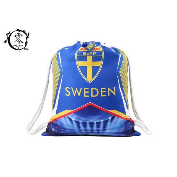 Sweden Team Sublimation Printed String Sports Bag , Custom Promotional Beach Pull String Bag Images |